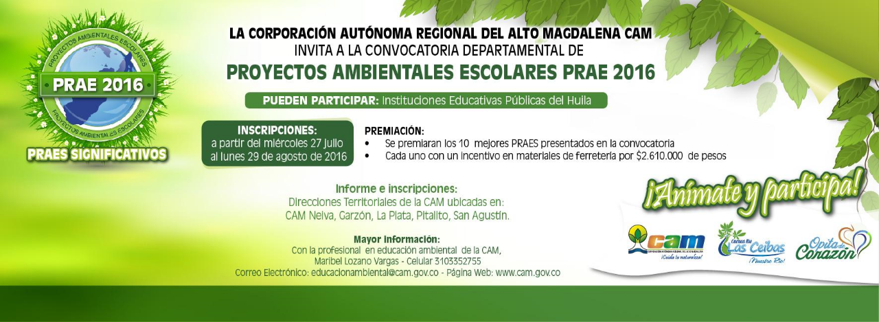 La Corporación Autónoma Regional del Alto Magdalena-CAM, como autoridad ambiental del Huila, lidera diferentes estrategias que buscan generar vínculos y sentidos entre la ciudadanía y la naturaleza, para lograr la preservación de nuestro medio natural.